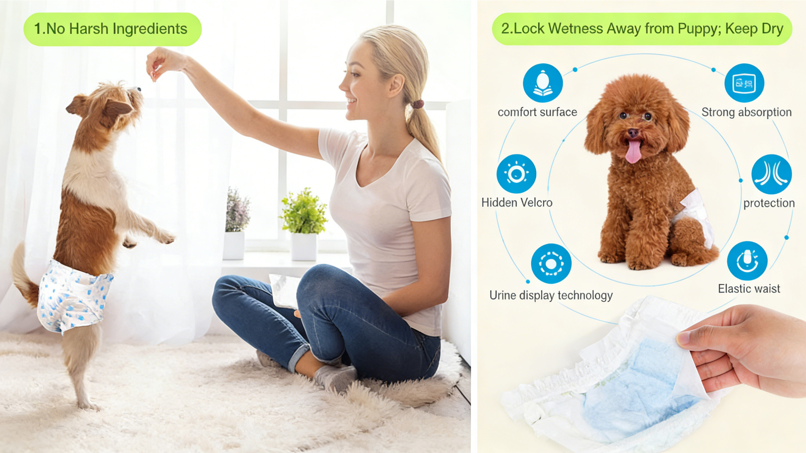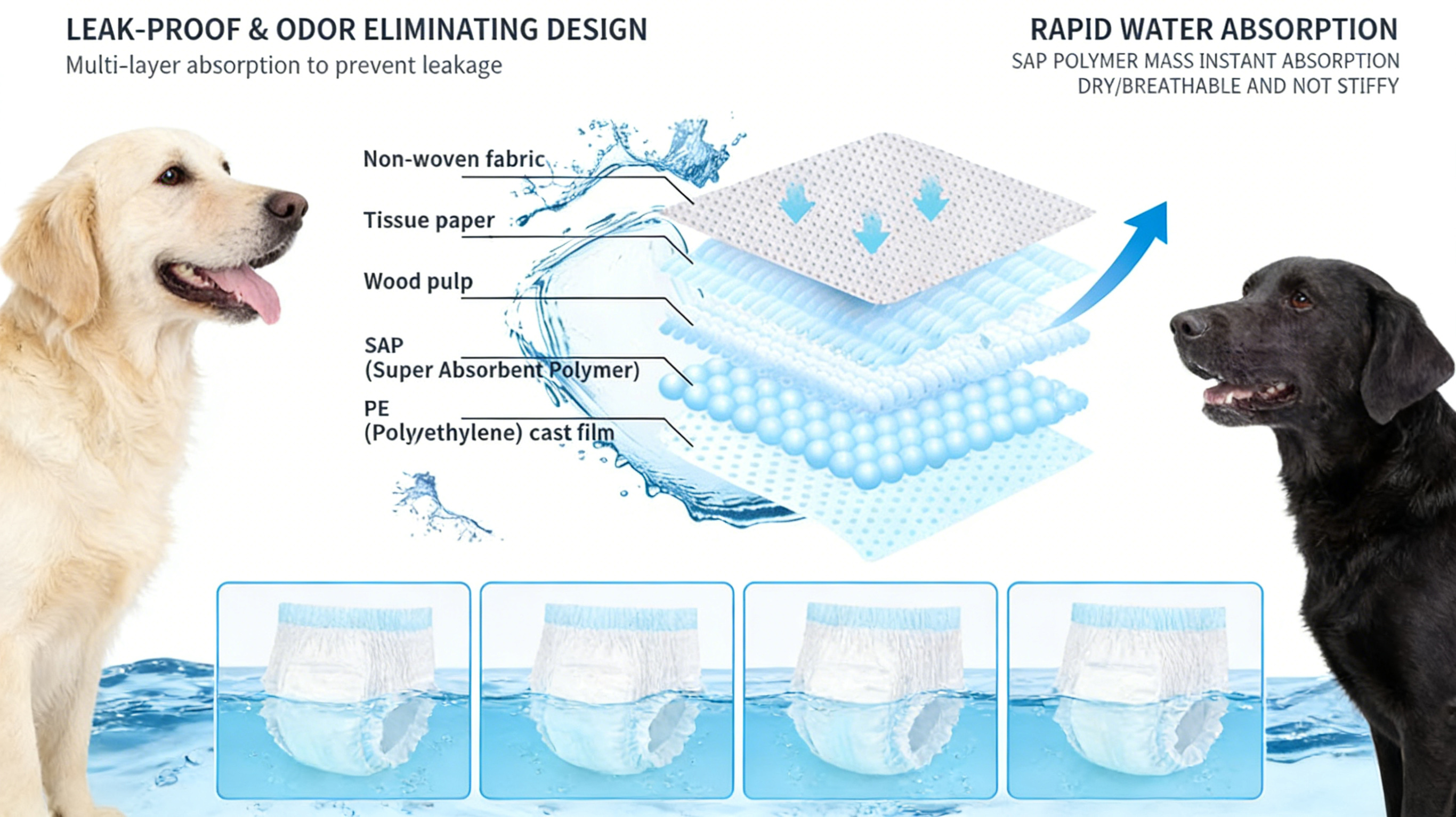 Comfortable and highly absorbent Pet Diapers designed for pet incontinence, training, and hygiene. Leak-proof, soft, and easy to use. OEM and private label options available for global wholesale partners.